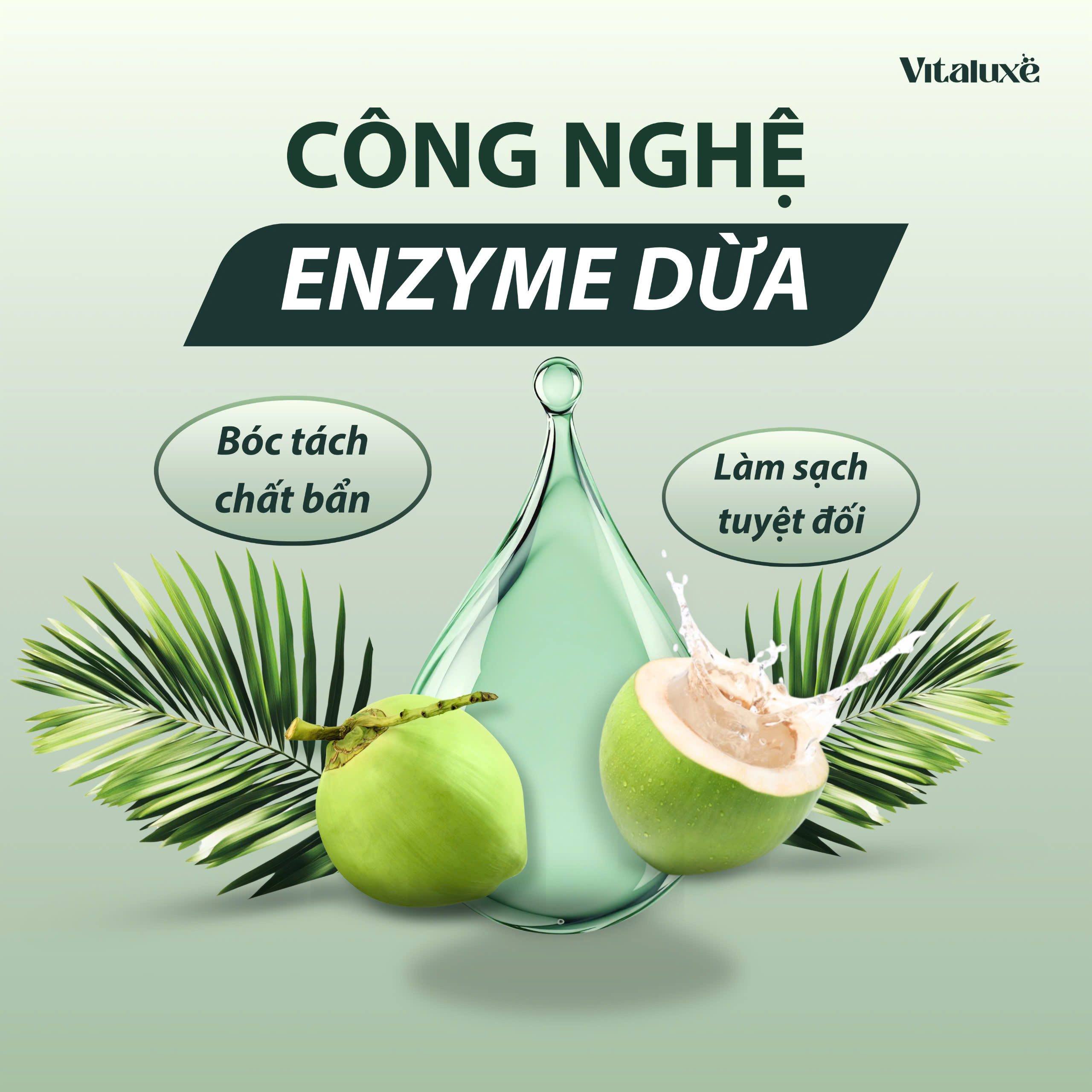 Với +20 năm nghiên cứu dừa tại Việt Nam, đội ngũ chuyên gia của Vitaluxe đã phát triển công nghệ Enzyme Dừa – Một giải pháp làm sạch vượt trội dựa trên nguyên lý bóc tách tự nhiên của enzyme. Không chỉ làm sạch hiệu quả mà còn an toàn tuyệt đối cho sức khỏe, thân thiện với môi trường, trở thành nền tảng cho hệ sinh thái sản phẩm của Vitaluxe.